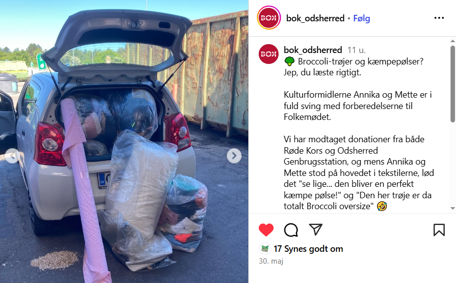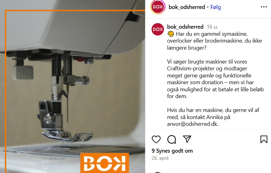 - BOK har modtaget midler til en lokal udgave af Re:wair Craftivism, hvor unge involveres i et stærkt fællesskab, der adresserer tøjspild og fremmer klimavenlig adfærd. Projektet laver upcycling, tøjbytte og pop-up værksteder.